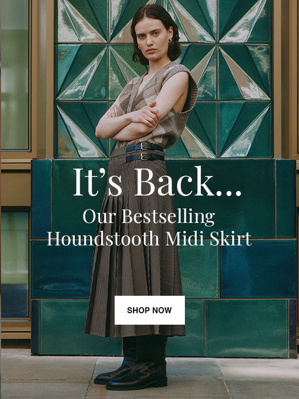 Houndstooth Pleat Midi Skirt