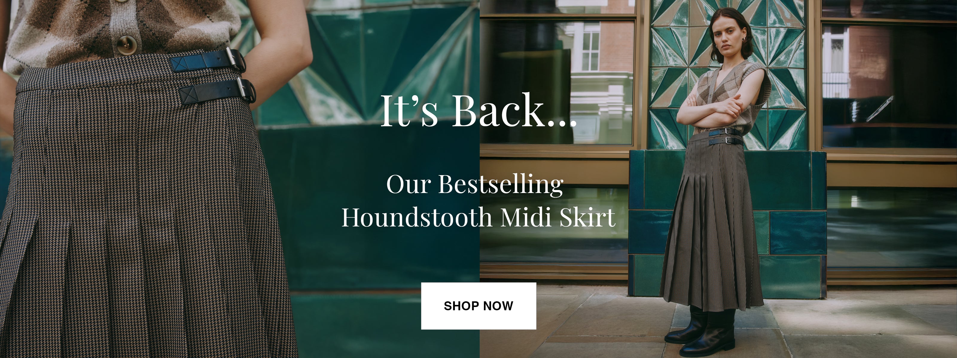 Houndstooth Pleat Midi Skirt