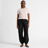 These black trousers are the cut of the season, the balloon shape. Crafted from organic cotton, they feature they feature an elasticated drawstring waist for all-day comfort and a voluminous shape that tapers to an elasticated hem, creating a clean, contemporary finish.