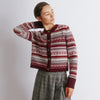 This popular cropped cardigan features a rich burgundy Fair Isle design, crafted from a soft wool blend for comfort and warmth. Its flattering shape is complemented by stylish horn effect buttons, making it a cosy and fashionable addition to your wardrobe.