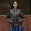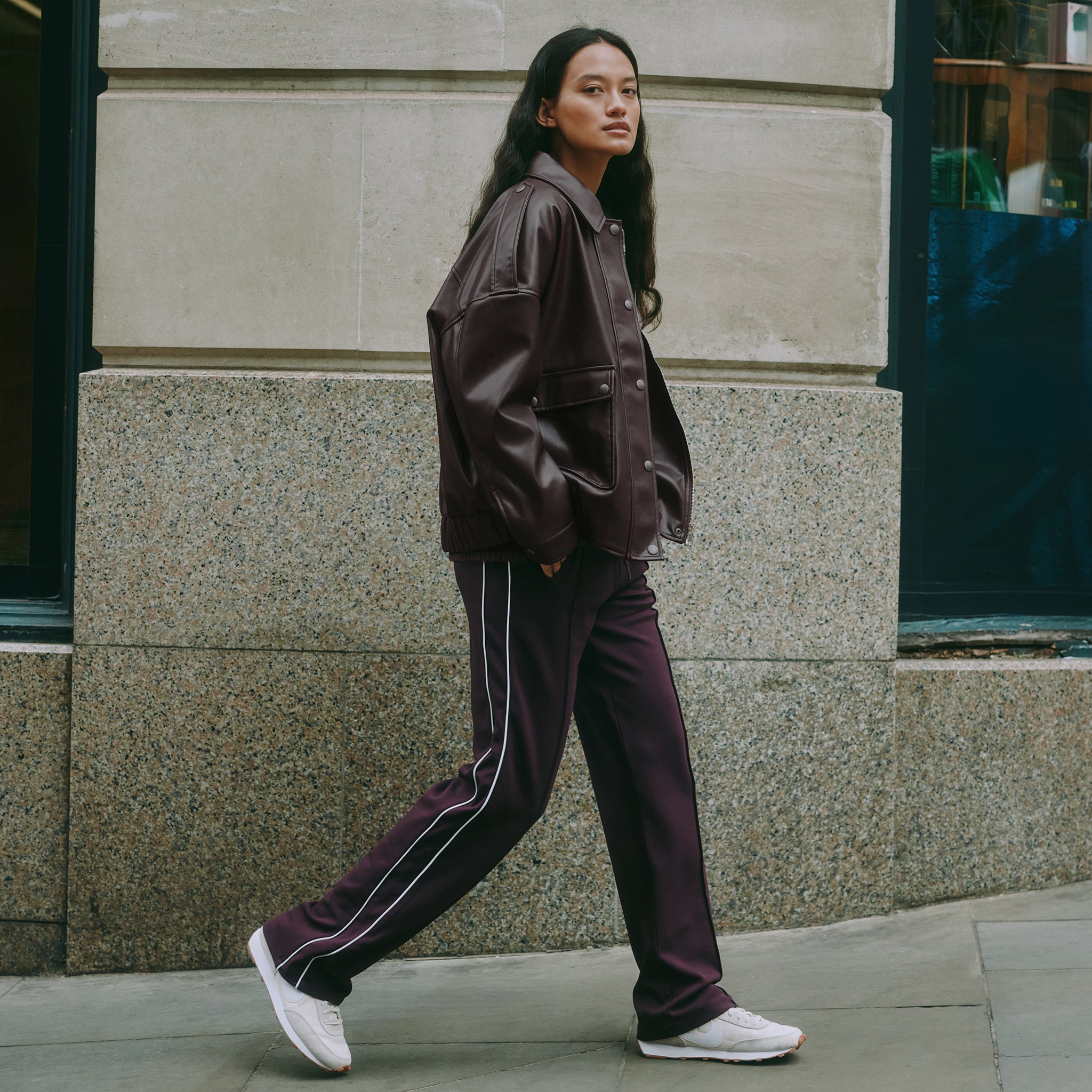 The style of the season, this classic relaxed-fitting bomber jacket is crafted from buttery-soft chocolate faux leather. Boasting a signature oversized look, this jacket features a classic collar, patch pockets, and popper fastening. The self-covered elastic cuffs and hem add a touch of comfort and style, making it a versatile choice. Fully lined for extra warmth and sophistication as the seasons change.