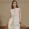 Tailored in a soft linen blend pinstripe, this chic waistcoat is the perfect summer styling piece. Designed with a flattering, streamlined fit, it features mock horn button fastenings that add a refined, contemporary touch. Lightweight and versatile, it can be worn as a standout top on warmer days or layered for a more polished look. Pair with the matching trousers for an effortlessly coordinated set that feels modern and sophisticated.