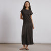 Combining both comfort and elegance, this midi dress features a soft jersey T-shirt with a luxurious plisse woven skirt in a rich chocolate tone. The satin plisse fabric creates subtle dimension and movement while maintaining a refined silhouette. Exceptionally versatile for various occasions, this dress effortlessly transitions from casual daywear when paired with sandals to an elevated evening outfit when styled with heels.