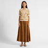 Indulge in luxury with our expertly crafted suede midi skirt. Cut in a flattering A-line silhouette with subtle patchwork detailing, it offers a contemporary twist on a timeless classic. Made from soft tan suede, it’s a versatile piece that transitions effortlessly through the seasons. Style it with a simple white vest and sandals for a fresh, warm-weather look, or layer with a chunky knit when the days grow cooler. Comfortable, refined, and endlessly wearable.