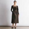 Elevate your wardrobe with the timeless sophistication of the Velvet & Taffeta Tulip Dress in a rich mole hue. This exquisite piece pairs a soft, stretch velvet bodice—designed with a graceful scoop neckline—with a voluminous, tulip-shaped taffeta skirt that flatters and flows. The contrast of textures creates a striking silhouette, making it the perfect choice for evening events, special occasions, or whenever you want to leave a lasting impression.