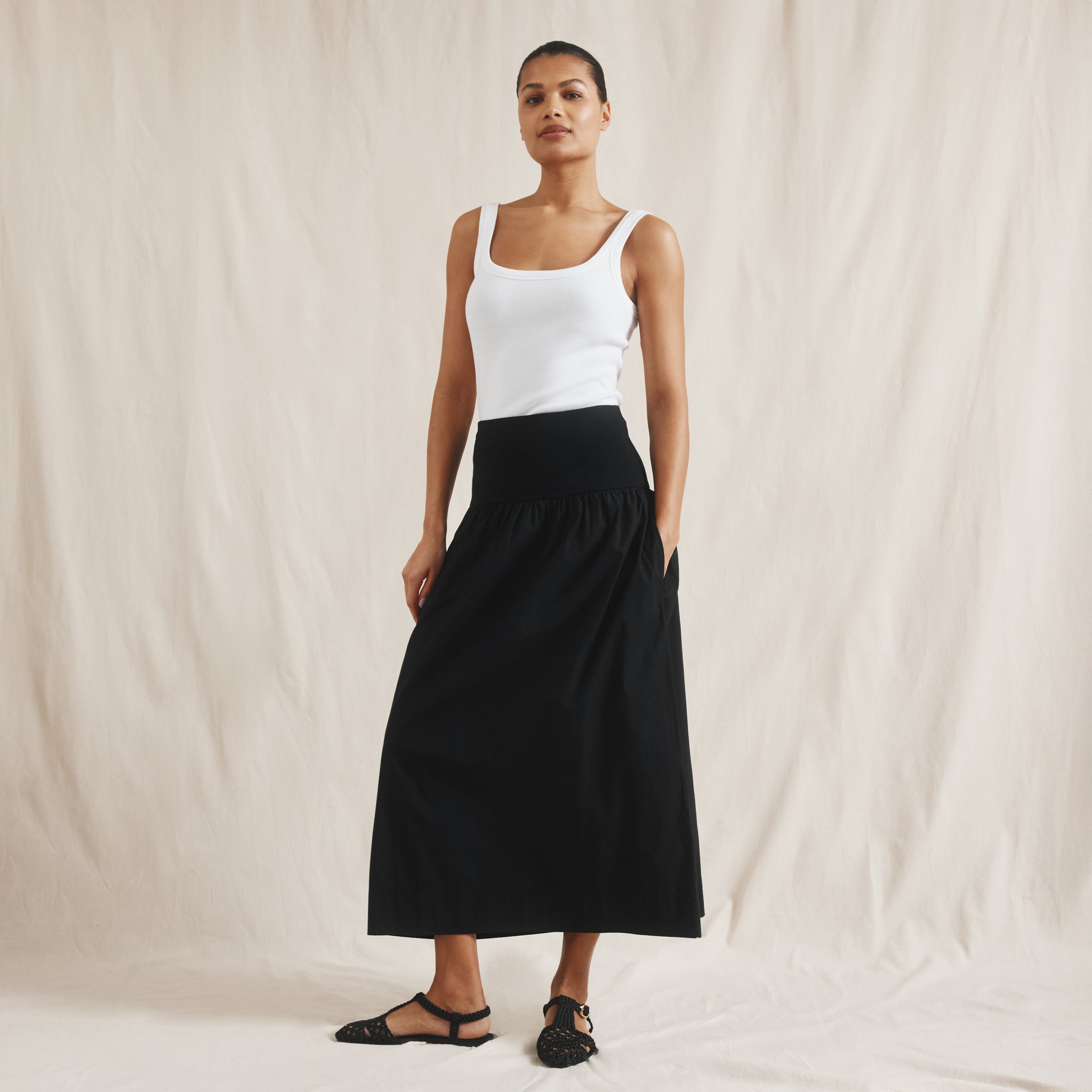 A full cotton midi skirt with a wide jersey waistband and must-have pockets in Black. Crafted with attention-to-detail, this long-lasting and versatile piece is sure to be an everyday favourite.